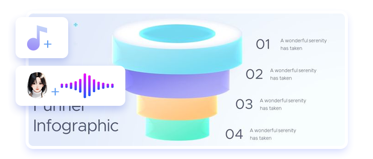 背景音楽やナレーションを自由に追加し、より魅力的で分かりやすいプレゼンテーション動画を作成できます。専門的な音声編集ソフトを使わなくても、直感的な操作で高品質なサウンドトラックを制作可能です。スライドショーに合わせたBGMの自動挿入機能も搭載しており、より洗練された動画を作成できます。